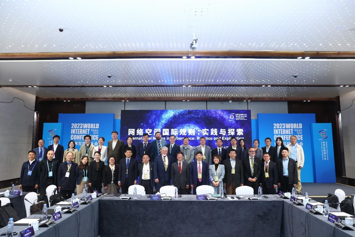 “网络空间国际规则:实践与探索”分论坛是世界互联网大会乌镇峰会重要论坛之一,由国家互联网信息办公室国际局联络组织,伏羲智库主办,我校和浙江大学协办。国家互联网信息办公室总工程师孙蔚敏致开幕辞,国家互联网信息办公室国际合作局副局长周先锋主持论坛开幕式。论坛邀请了清华大学国家治理研究院执行院长孟庆国教授,红十字国际委员会主席中国事务个人特使、红十字国际委员会东亚地区代表处主任史德林,美国信息产业机构总裁缪万德,美国白宫前网络安全事务助理梅丽莎·海瑟薇,上海社会科学院新闻研究所副所长戴丽娜,北京航天航空大学教授吴文峻,荷兰政府网络安全顾问罗杰·克里默斯,瑞士苏黎世大学荣誉退休教授罗尔夫·韦伯,武汉大学法学院副院长、网络治理研究院院长黄志雄,联合国科学和技术发展委员会主席彼得·梅杰,中国社科院世界经济与政治研究所、国家全球战略智库研究员郎平,美国东西方研究所前总裁布鲁斯·迈康纳,中国现代国际关系研究院前副院长张力等30余位专家学者、国际组织成员以线上、线下形式参加论坛,部分国家驻华使馆代表列席论坛,与会嘉宾围绕“数据治理国际规则构建的机制与路径”“全球人工智能治理的挑战与实践”“构建网络空间国际治理新秩序”等议题展开深入讨论。