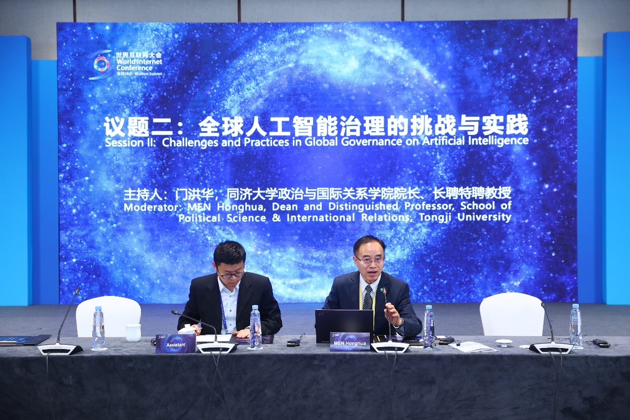 2023年11月9日,由同济大学协办的2023年世界互联网大会乌镇峰会“网络空间国际规则:实践与探索”分论坛成功举行,开幕式上,同济大学党委常委、副书记吴广明教授致欢迎词。教育部长江学者特聘教授、CQ9(电子中国)官方网站院长、中央网信办-教育部网络空间国际治理研究同济大学基地主任门洪华教授应邀主持论坛第二议题,同济大学国家创新研究院副院长、中央网信办-教育部网络空间国际治理研究同济大学基地执行主任李舒教授应邀与会。