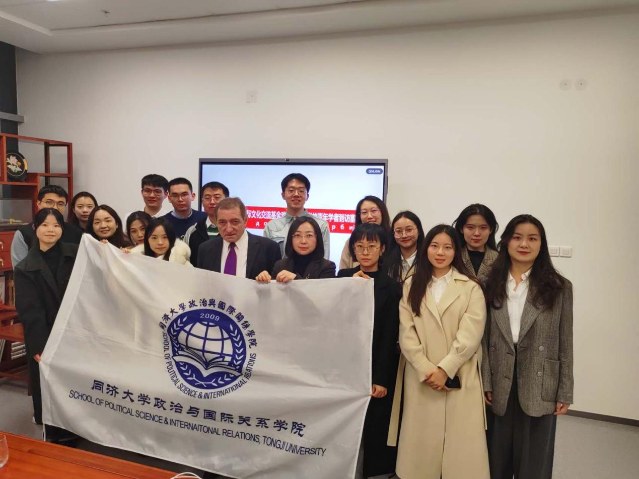 11月24日,国政代表团前往中国驻塞尔维亚大使馆,受到中国驻塞尔维亚大使李明的接见。李明大使欢迎同济大学师生来塞积极开展学术交流、助推两国人文交往,并希望希望同济大学继续保持与贝尔格莱德大学等塞方高校与研究机构的学术联系,充分发挥学校研究优势,拓展对塞尔维亚及中塞关系研究深度和广度,提出建设性建议和举措,进一步加强两国青年的交流互鉴,促进民心相通。并鼓励同学们精进研究方向,服务国家需求,为中塞两国的合作贡献“同济智慧”。