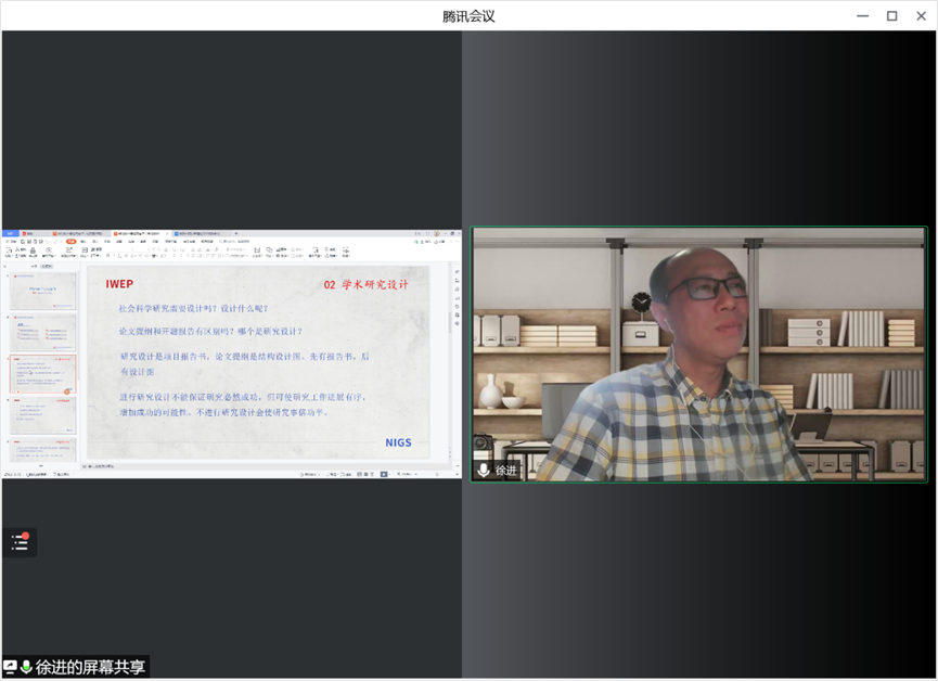 在本次讲座中,徐进老师从“研究的含义、研究问题、研究类型和研究设计”等四个方面对研究设计与论文写作展开讲解。