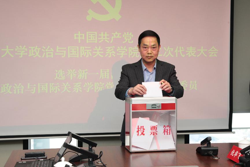 学院党委书记蔡三发同志代表政治与国际关系学院党委向会议作题为《同舟共济 追求卓越,全面开启政治与国际关系学院高质量发展新征程》的报告。报告主要由“六年来的工作回顾”“学院党建工作中存在的主要问题和不足”“今后五年的主要任务”三个部分组成。