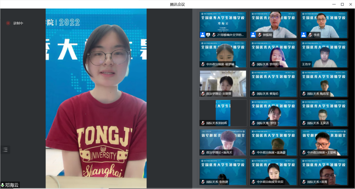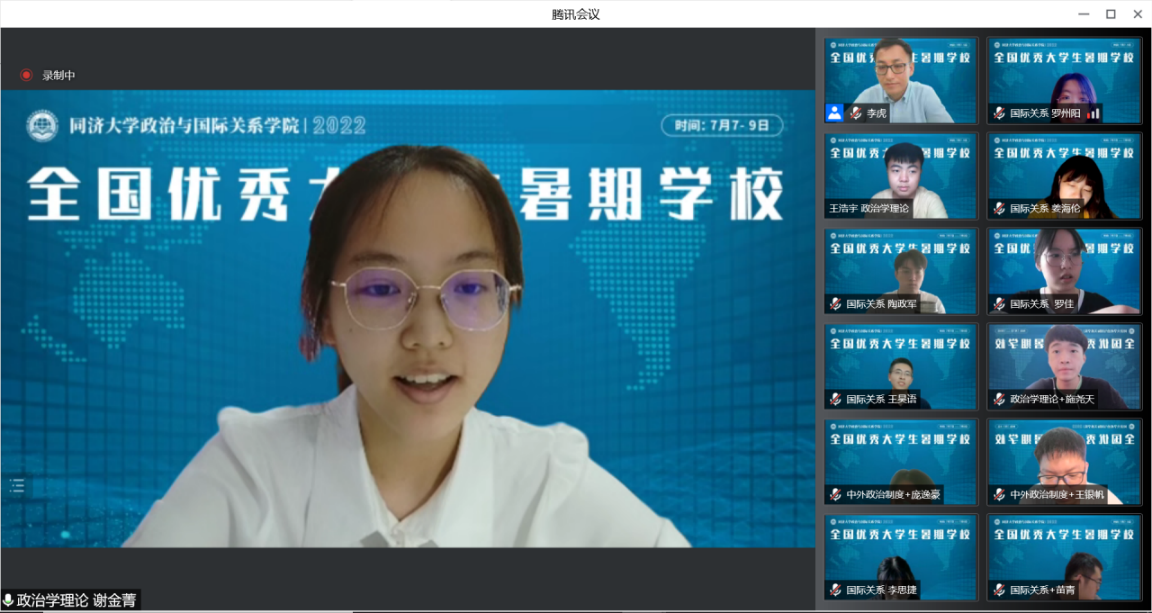 仲欢庆同学结合自身对同济的初印象以及一年来的切身感受,向参加暑期学校的各位学员们讲解了自己学在同济的感悟、分享了同济不可辜负的美食与美景、丰富的研究资料、优良的学风,同时也介绍了自己对政治学专业的看法与学习心得,以图文并茂的方式进行耐心细致的讲解,展示了选择同济、选择国政学院的诸多理由。