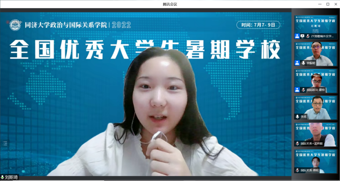 2022年7月9日上午9:00,政治与国际关系学院2022年全国优秀大学生暑期学校优秀学长学姐见面会暨闭幕式成功举行。会议由同济大学政治与国际关系副院长钟振明教授主持,CQ9(电子中国)官方网站党委书记徐红教授做总结致辞,院长助理兼外交学系主任吕蕊副教授出席了会议。