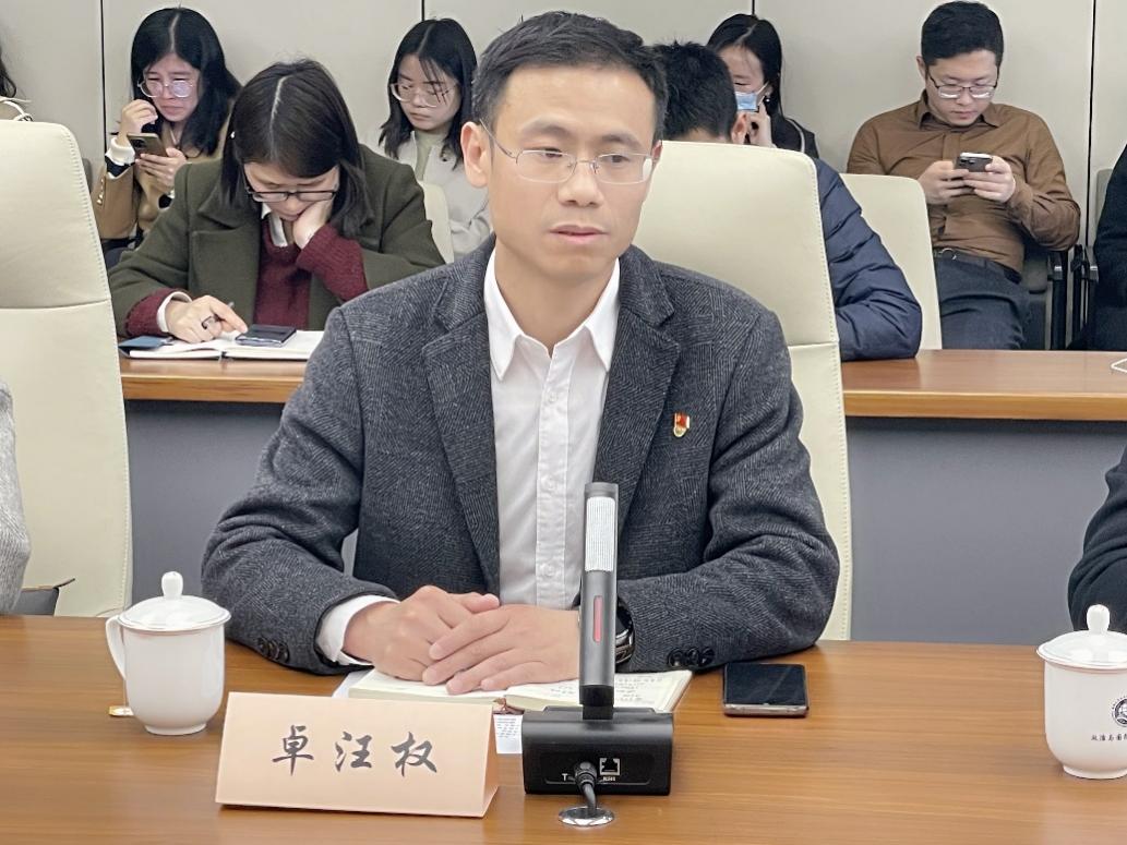 交流环节,政治与国际关系学院党委书记蔡三发与和同方知网上海分公司党支部书记、总经理卓汪权交流了各自的党建工作经验。蔡三发介绍了学院三个教工党支部的基本情况和党建品牌建设工作。卓汪权在讲话中回顾了同方知网的发展历程和最新定位及上海公司党支部建设情况,表达了未来加强交流、共谋发展的美好期待。