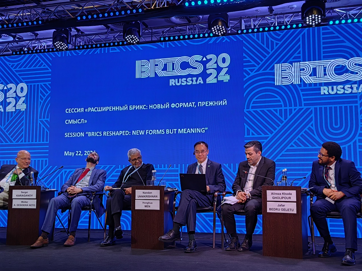 第十六届金砖国家学术论坛2024年5月22-24日在俄罗斯莫斯科举行,中联部研究室主任、金砖国家智库合作中方理事会秘书长金鑫博士率团与会并发表基调演讲。