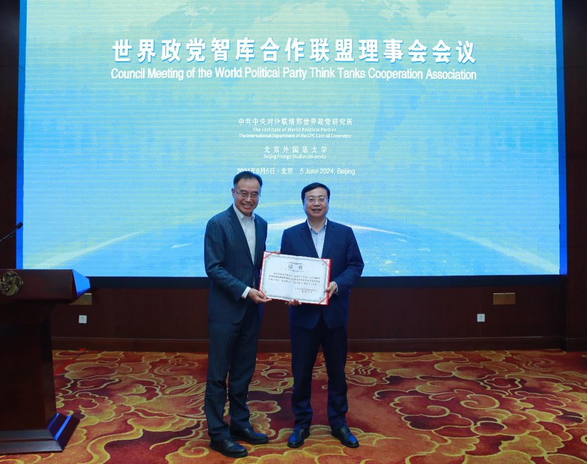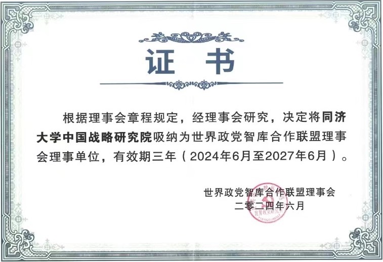 2024年6月5日,世界政党智库合作联盟理事会会议顺利举行,同济大学中国战略研究院被吸纳为理事单位,教育部“长江学者”特聘教授、同济大学中国战略研究院/政治与国际关系学院门洪华院长出席联盟理事会会议。
