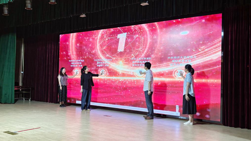 同济大学国际政治学院教工第二党支部书记赵萍丽、研究生第一党支部书记巫晓莉、研究生第二党支部支委奚佳莹同学与四平路街道机关第四支部书记葛云峰,一起共同启动了自治项目赋能结对仪式。随后,街道通过视频短片的形式,展示了一系列居民社区治理的优秀项目。