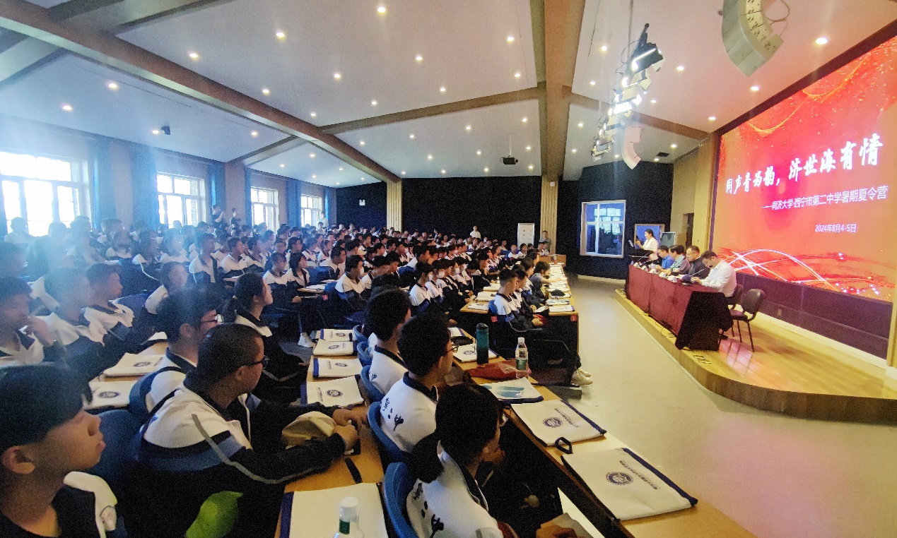 西宁市第二中学关金海校长首先对同济大学一行的到来表示热烈欢迎。他在致辞中指出,同济大学作为一所具有百年历史的著名高校,始终致力于培养具有国际视野、创新精神和实践能力的高素质人才。此次暑期夏令营不仅是一个学习的平台,更是一个成长的舞台;同济大学的专家学者不仅为西宁二中的师生们带来了一场科技盛宴,更打开了一扇通往未来世界的大门。可以说,同济大学走进西宁二中的校园,既可以让学校其坚定前行的信心和决心,更能够为同学们树立更高的目标和追求。就此,关金海校长希望营员们遵守纪律、服从安排,积极参与、勇于交流,互相帮助、团结协作,从而在本次夏令营中学到知识、提升能力结交朋友、收获快乐。