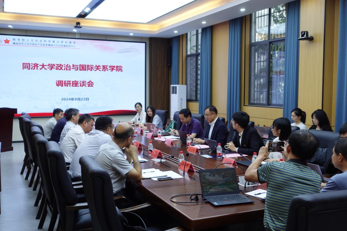 赣州市红色资源保护发展中心副主任何定胜详细介绍了赣州市红保中心近些年来取得的工作成果。他表示,红保中心在赣州市委市政府的领导下开展了覆盖赣州全市的红色资源调查、制订并实施红色遗产保护条例等多项举措,推动了红色资源和红色文化遗产的应保、尽保。赣州市委党史研究室副主任陈安介绍了赣州市党史研究和地方志工作的有关情况。他表示,赣州的红色文化深厚、红色资源丰富,与之相关的一系列课题还有待系统性地研究阐释,赣州市委党史研究室将积极提供平台与项目资源,与同济大学国政学院在相关研究领域进行密切的合作。赣南师范大学中国共产党革命精神与文化资源研究中心副主任彭景涛介绍了研究中心建设与《红色文化学刊》办刊情况。他强调,红色文化育人是科研成果转化的重要渠道,并介绍了研究中心独具特色的秉承“课堂育人、情景育人和文物育人”教育模式。