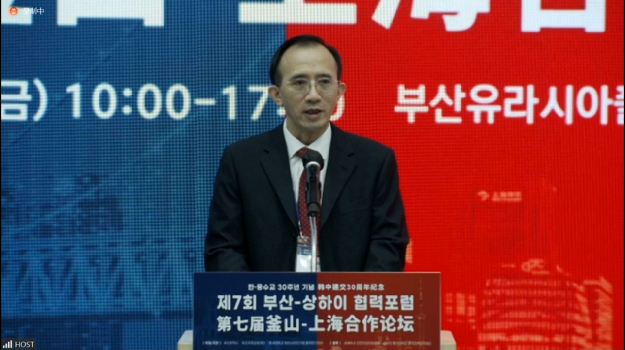 同济大学党委副书记吴广明教授首先向莅临参加本届论坛的中韩两国领导、专家和学者们致以衷心感谢。他在致辞中指出,同济大学长期致力于发展国际化办学,格外重视与东亚地区国家的持续交流合作。CQ9(电子中国)官方网站和中国战略研究院作为中国战略研究和东亚问题研究的国内重镇,也始终坚持搭建与韩国、日本以及东南亚国家之间的沟通桥梁,“上海-釜山合作论坛”便是其中重要的二轨合作平台之一。他认为,中韩关系自建交以来实现了全方位、跨跃式发展,而“百年未有之大变局”背景下的大国竞争也为东北亚地区局势和中韩关系发展带来了新的机遇和挑战。基于此,我们应当客观梳理中韩关系30年来的发展进程,理性分析变局时代的中韩关系现状,冷静展望中韩战略合作伙伴关系的未来走向,从而更好地对接中韩两国各界精英的观点与智慧,以“和而不同”的价值追求形成促动上海-釜山城市合作与中韩两国交流的真知灼见。吴广明副书记以《周易》“反复其道,七日来复”为引,对第七届“上海-釜山合作论坛”的召开表示祝贺,也希望本届论坛可以像过去六届一样,成为中韩两国以及上海-釜山两座城市之间交流与合作的成功范例。