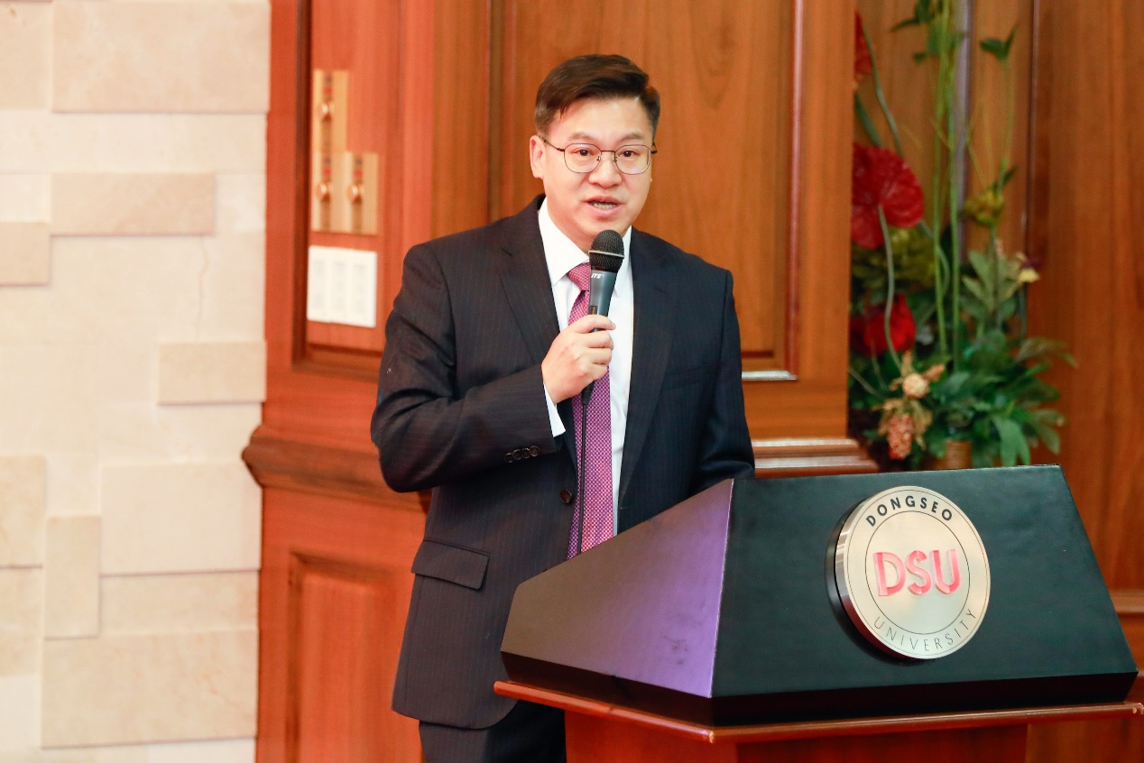 张济国校长在致辞中欢迎来自中韩两国的嘉宾来到东西大学,参加第九届上海釜山合作论坛。他指出,中韩两国自建交以来在各领域展开了卓有成效的合作,而釜山和上海两座姊妹城市也开展了宽领域、多层次的交流合作,成果丰硕。东西大学坚定支持同中方合作,持续举办釜山-上海合作论坛,期待本届论坛会议圆满成功。