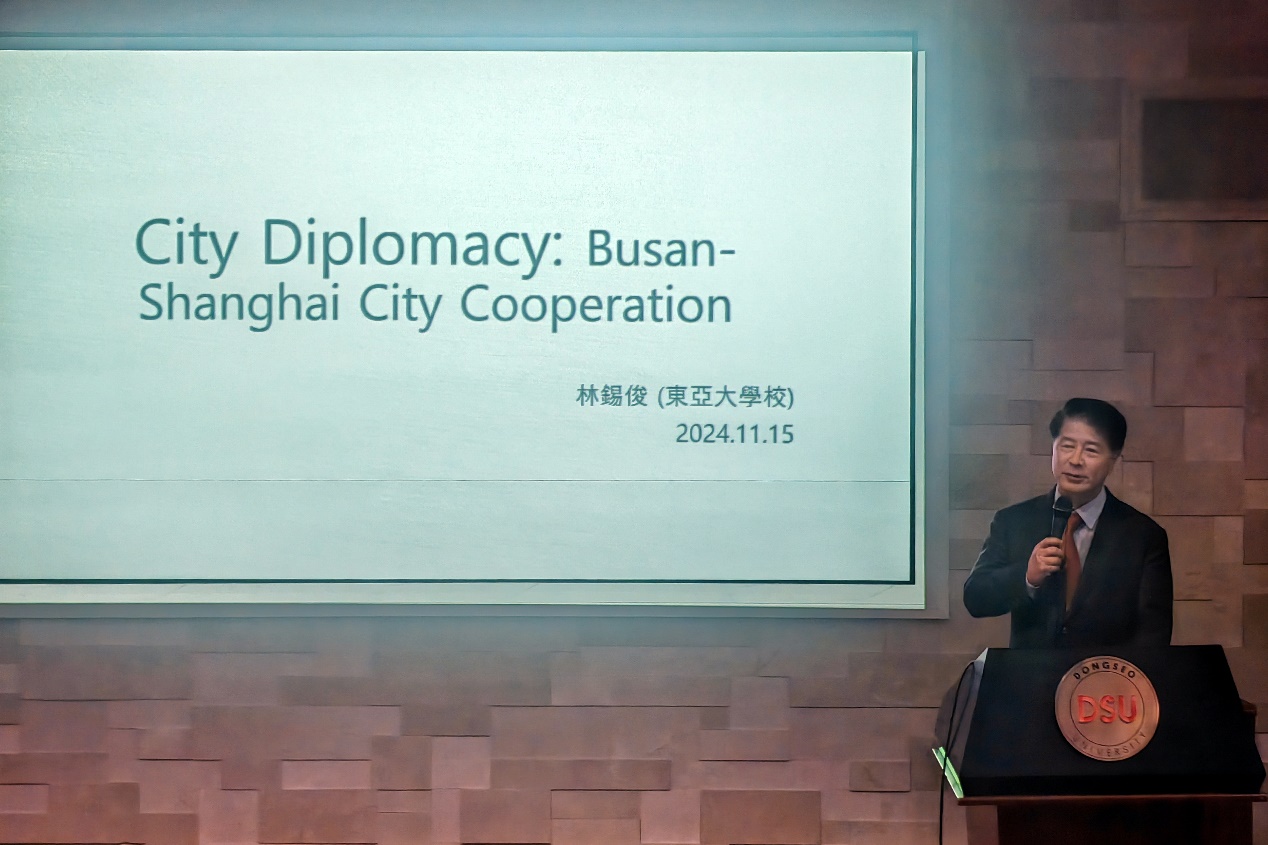 金东河教授在专题发言中聚焦分析釜山-上海未来经济合作方案。他指出,釜山一直积极推进对华经济合作,其对华贸易规模自2000年以来增加了4.7倍,近年来,釜山对中国的出口比重持续缩小,进口比重持续扩大,2023年从中国进口的比重达到30%,而同年韩国也出现了韩中建交31年来首次对华贸易逆差,且逆差额高达180.4亿美元。他分析了釜山对上海的贸易结构和双方投资关系的变化,认为未来釜山要认清形势,持续强化同上海及整个中国的经济合作,重点是扩大韩中自由贸易区,合作打造韩中产业园区,在深入研究中韩贸易结构变动的基础上有针对性地拓展新兴技术领域的商品和服务贸易。他同时指出,过去30年上海经济规模快速增长,与釜山的经济合作关注度明显降低,上海和釜山两座姊妹城市之间要认真探讨在跨境电子商务,尖端技术领域(AI、机器人、信息通信技术、半导体等),生物和环保技术,人才和企业交流、网络游戏、电视剧、电影等文化内容领域的广泛合作。