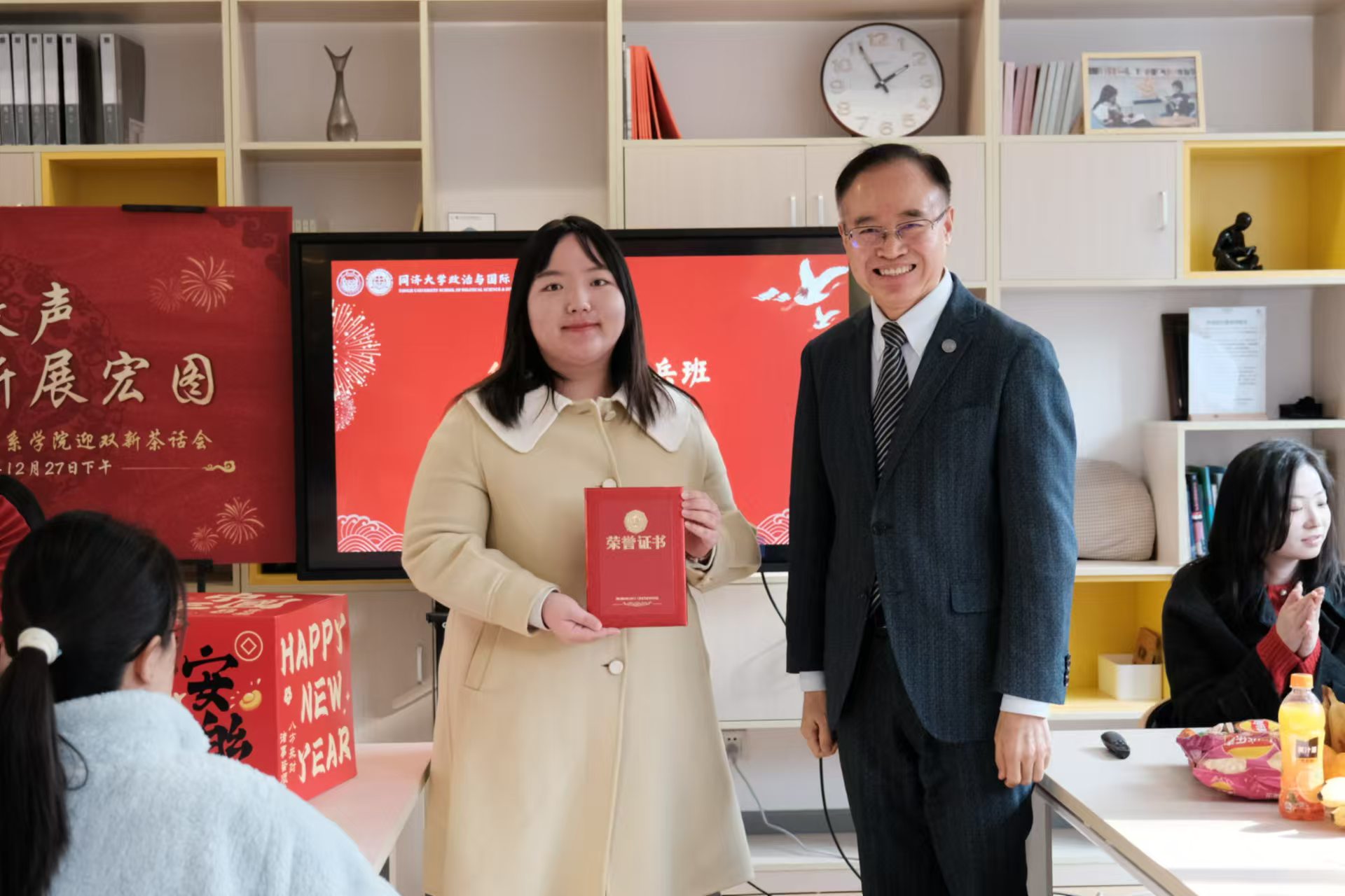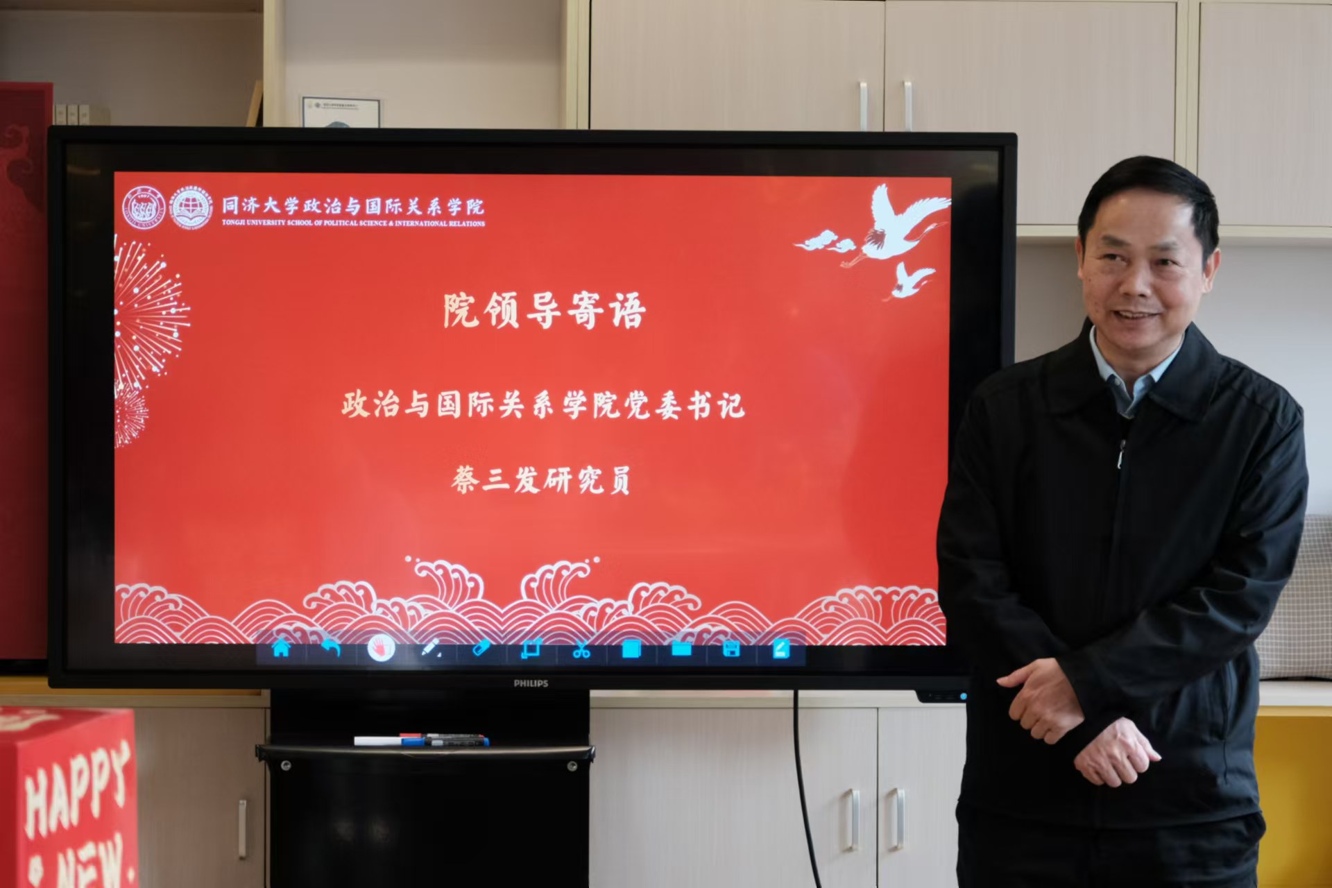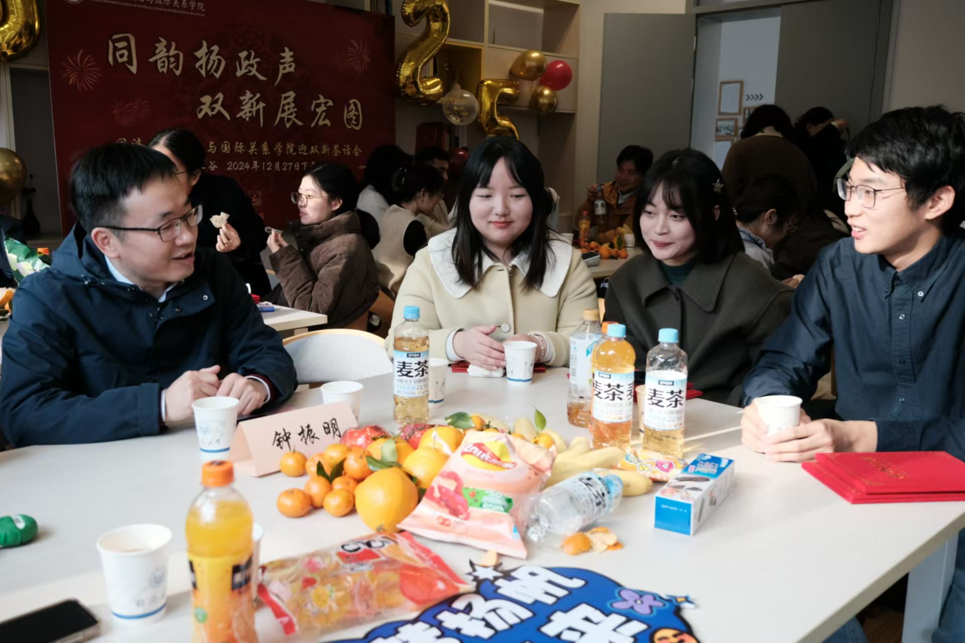 2024年12月27日下午,政治与国际关系学院“同韵扬政声,双新展宏图”迎新师生座谈会在创业谷一楼顺利举办。教育部长江学者特聘教授、学院院长门洪华教授,学院党委书记蔡三发研究员,学院党委副书记张娣老师,学院副院长钟振明教授,政治学系余敏江教授,院长协理、外交学系系主任吕蕊副教授,院长协理、社会学研究所所长钟晓华副教授等学院领导老师与40余名学生代表齐聚一堂,同贺新年,共话未来。座谈会由学院学工办副主任岑昱玮老师主持。
