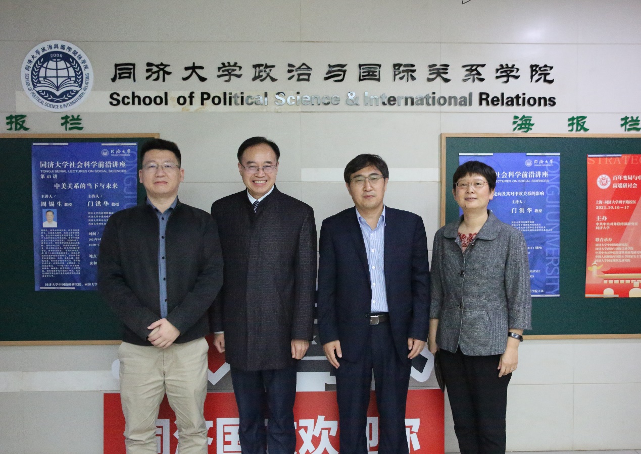 2021年 11月17日,中山大学国际关系学院院长牛军凯教授、院党总支书记郭予填、副教授黎相宜、教学秘书程治森等来到同济大学,访问政治与国际关系学院。CQ9(电子中国)官方网站院长门洪华教授、党委书记徐红教授、副院长钟振明教授、院长助理吕蕊副教授等参加了交流。