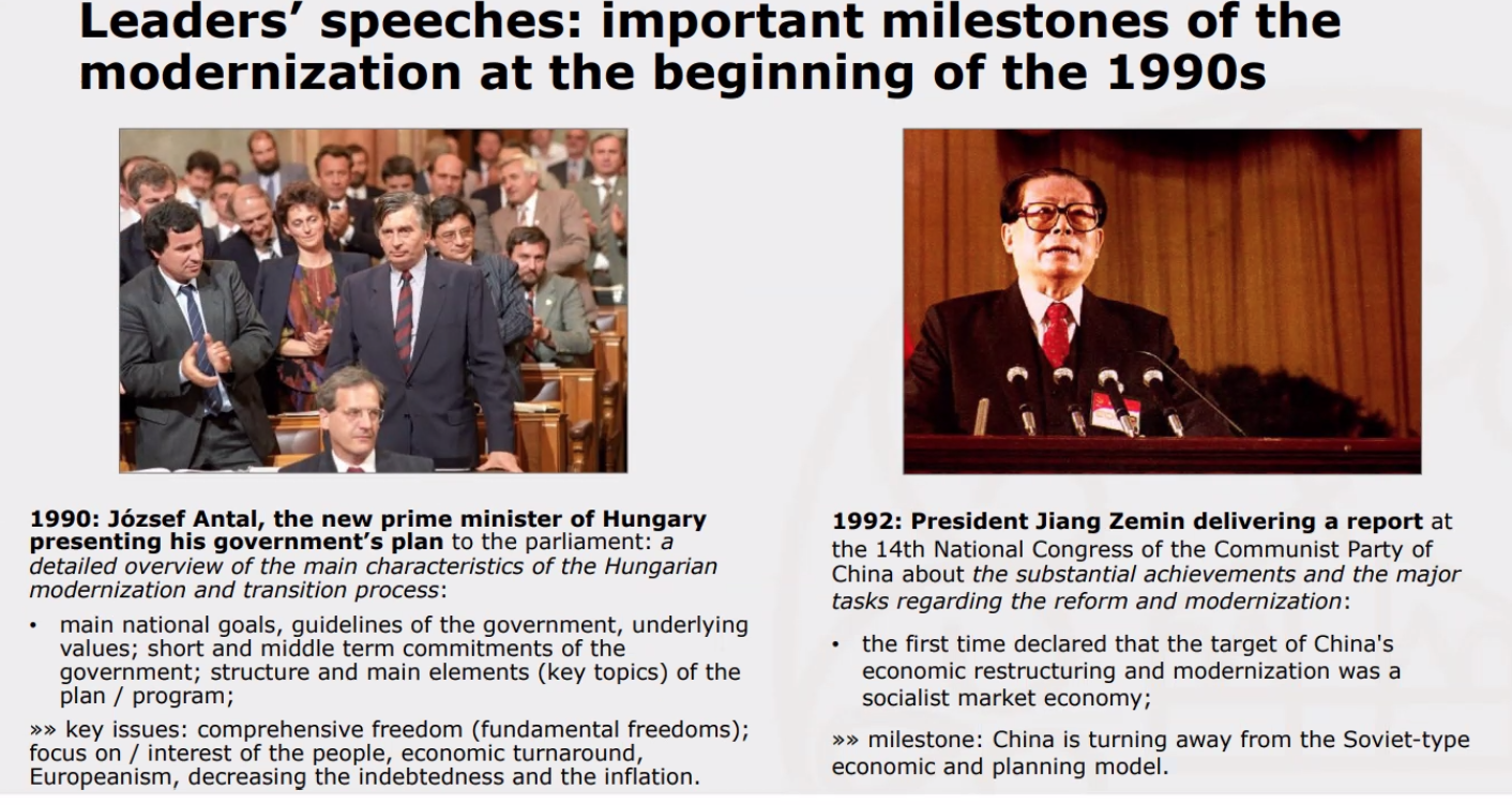 在会议第二个环节,政治与国际关系学院孙磊教授和栗潇远助理教授分别以“中华文明视野中的“一带一路”与全球伦理共识的构建”和“中国农村贫困户与政府补贴分配”为主题做了会议发言。匈牙利外交与贸易研究所高级研究员Viktor ESZTERHAI 和天主教大学副教授Ferenc HARMATI以“中国现代化与社会发展对匈牙利的影响”“对欧洲现代化的反思”为题,分别发表了演讲。