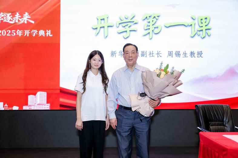 在本次开学典礼中,学院特别邀请周锡生副社长为国政师生们讲授“开学第一课”。周教授以“站稳立场、志存高远,把握国政学研主攻方向”为主题,深入剖析了当前复杂多边的国际格局,阐述了新时代下学术研究的核心理念和方法。周锡生教授强调同学们应该正确认识到自己不仅是这个时代的见证者,更是重要的参与者、深度的研究者,肩负着为国家谋发展、为民族谋复兴、为人类谋进步的崇高使命。整场报告立意高远、内涵丰富,既有理论高度,又有实践深度,为在场的师生们指明了学术研究的方向和路径,赢得了全场师生的热烈反响。报告结束后,学生代表田向杏向周锡生老师献花,表达最诚挚的敬意与感谢。