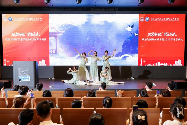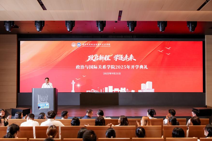 在庄重而热烈的氛围中,开学典礼正式拉开帷幕。教育部长江学者特聘教授、政治与国际关系学院院长门洪华教授发表了题为《聚焦主业主线 践行精英培养》的新学年致辞。门院长全面回顾了学院的发展成就,深刻阐述了我院在同济文科学院及全国政治学学科的重要地位与全球战略研究的学术引领作用,明确了学院始终肩负“聚焦主业主线、践行精英培养”的使命与目标,提出要坚定推进“战略、治理、思想史、方法论”四大发展路径,勉励全体师生锤炼战略思维、深耕治理研究、厚植思想史底蕴、强化方法论训练,在砥砺学术、追求真理的道路上实现个人与学院的共同成长,为构建自主的中国政治学知识体系、推动国家治理和全球治理贡献同济智慧。