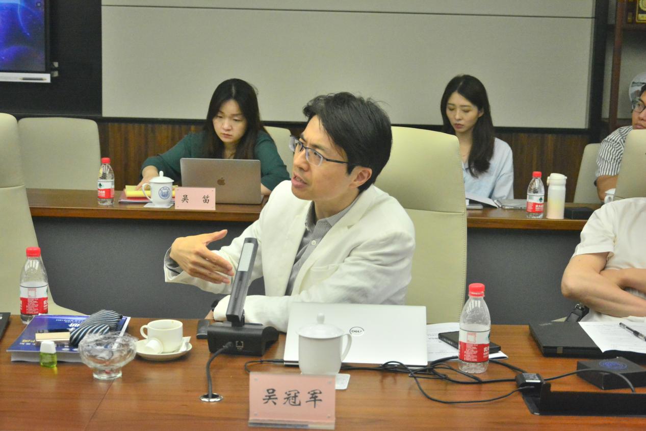 教育部长江学者特聘教授,华东师范大学政治与国际关系学院院长吴冠军教授就“假如世界是一个元宇宙——面向奇点的国际政治研究”发表专题演讲。他以“元宇宙”这一技术现象与海森堡创立的“量子力学”作为本次发言的切入点,揭示世界底层的不确定性,从而质疑世界的真实性。吴冠军教授认为在不确定性的世界,只有互动才是唯一重要的事情,由此提出了互动本体论,即互动先于存在,由互动所建构起来的世界,无所谓虚实与主客的二分,它是无限打开的世界化的过程,而这一过程并不仅仅局限于人与人之间的互动,而更应该探索人类与自然、我们与世界的关系。因此吴冠军教授强调人类社会正在走向不确定的奇点时代,各个国家应该加强合作,形成真正的“生命共同体”,避免走向不可控的世界。