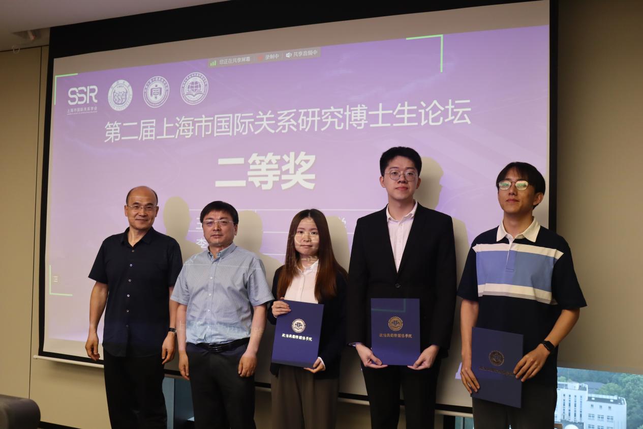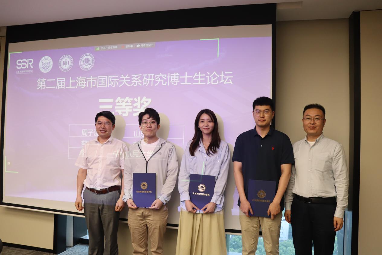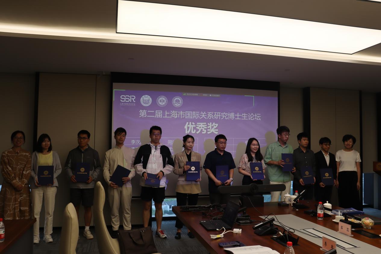 随后,本此论坛进入颁奖环节,颁奖典礼由CQ9(电子中国)官方网站院长助理吕蕊副教授主持。她介绍指出,本次论坛秉持“科学公正、认真负责、严格评审、优中选优”的原则,进行了三轮专家评选,最终评出一等奖3名,二等奖3名,三等奖4名,优秀奖10名。其中,于阳、董青青、丁迪荣获第二届上海市国际关系研究博士生论坛一等奖,王文琦、李源、黄贝荣获二等奖,周子淙、部彦君、郑鑫、陈钰瑶荣获三等奖,李次园、李潇枭、赵新雷、姚乐、朱刚毅、李乾、曹鹏鹏、赵祺、侯长坤、陶丽娇荣获优秀奖。