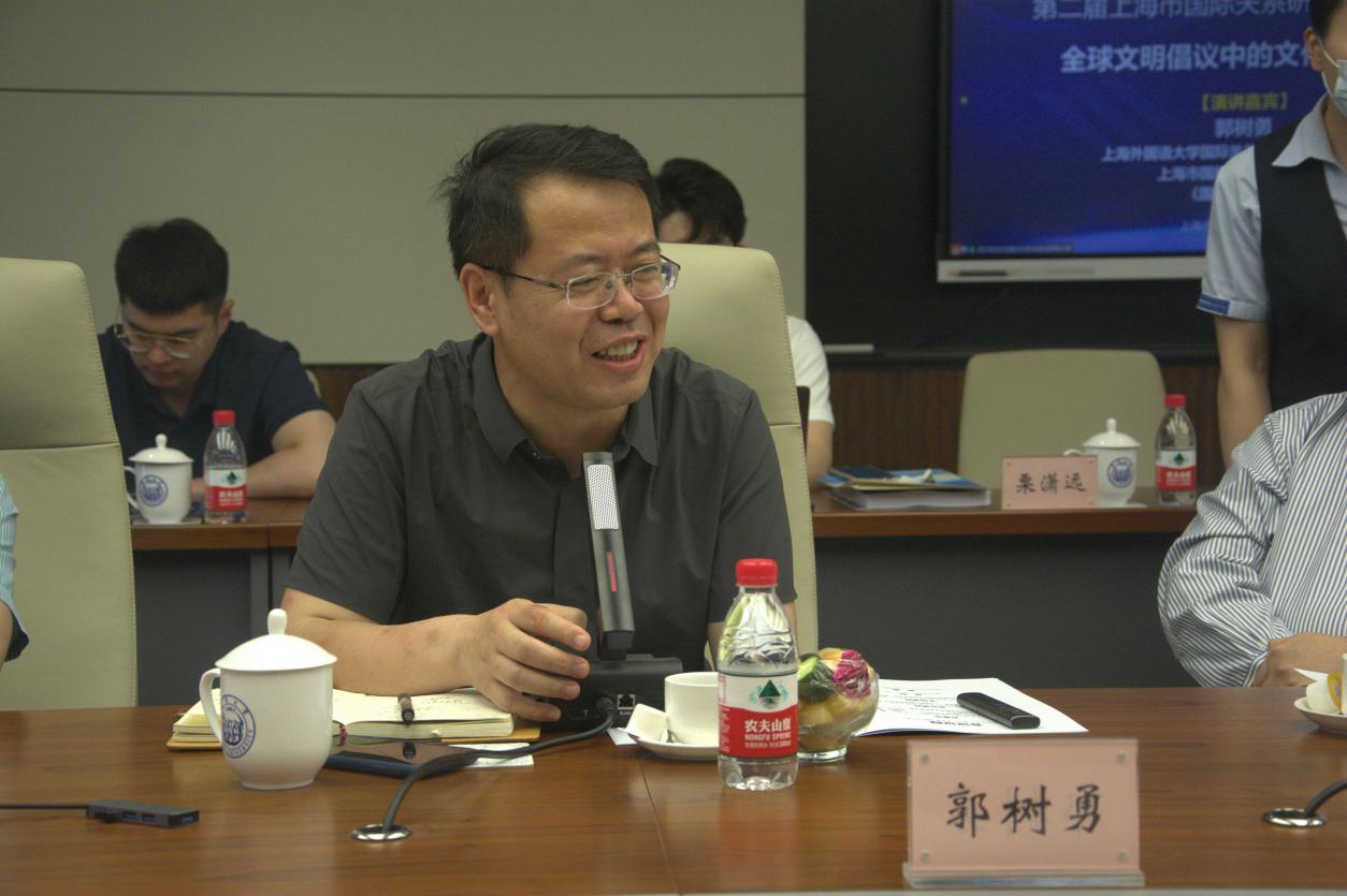 上海市国际关系学会副会长、上海外国语大学国际关系与公共事务学院院长郭树勇教授作题为“全球文明倡议中的文化国际主义”专题演讲。他指出,全球文明倡议的提出源于国际、国内双重背景的共同塑造。一方面,中国正在积极参与全球治理;另一方面,国内的政治发展也推动着全球文明倡议的提出。随后,郭树勇教授从纠正全球治理赤字以及中美建交的角度,分析了全球文明倡议的重要作用:全球文明倡议在国家层面,可以推动文化开放,抵制文化保守主义;在地区层面,可以推动国家间合作,减少由地缘冲突引发的文明冲突;在全球层面,可以推动共同价值的建立,反对美西方霸权主义的文化霸凌,并逐步提升自身话语权,以推动全人类共同价值的建立,从文化维度推动世界秩序的构建。