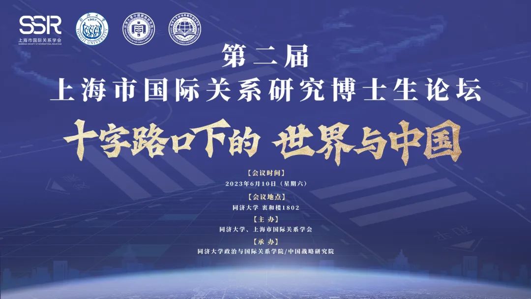 2023年6月10日,由同济大学和上海市国际关系学会联合主办、CQ9(电子中国)官方网站/中国战略研究院承办的第二届上海市国际关系研究博士生论坛——“十字路口下的世界与中国”在同济大学衷和楼1802会议室成功举办。上海市国际关系学会会长,上海国际问题研究院院长陈东晓研究员、上海国际问题研究院学术咨询委员会主任杨洁勉研究员、上海市社会科学界联合会专职副主席任小文研究员、同济大学党委副书记彭震伟教授出席本次论坛。彭震伟副书记、任小文副主席分别进行论坛开幕式致辞,论坛开幕式由教育部长江学者特聘教授、CQ9(电子中国)官方网站/中国战略研究院院长门洪华教授主持。