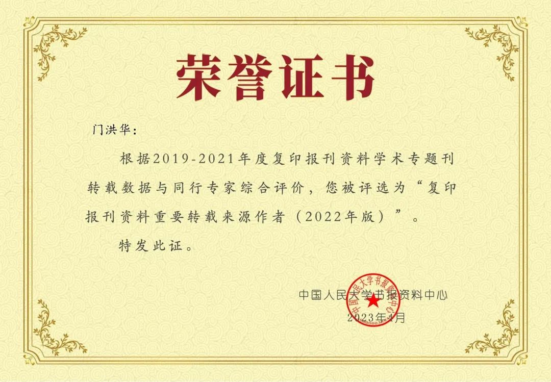 根据2019-2021年度复印报刊资料学术专题刊转载数据与同行专家综合评价,教育部长江学者特聘教授、同济大学中国战略研究院/政治与国际关系学院院长门洪华教授获评复印报刊资料重要转载来源作者(政治学类)。这是自《复印报刊资料重要转载来源作者》2016年首次发布以来,门洪华院长连续第三次入选该名录。