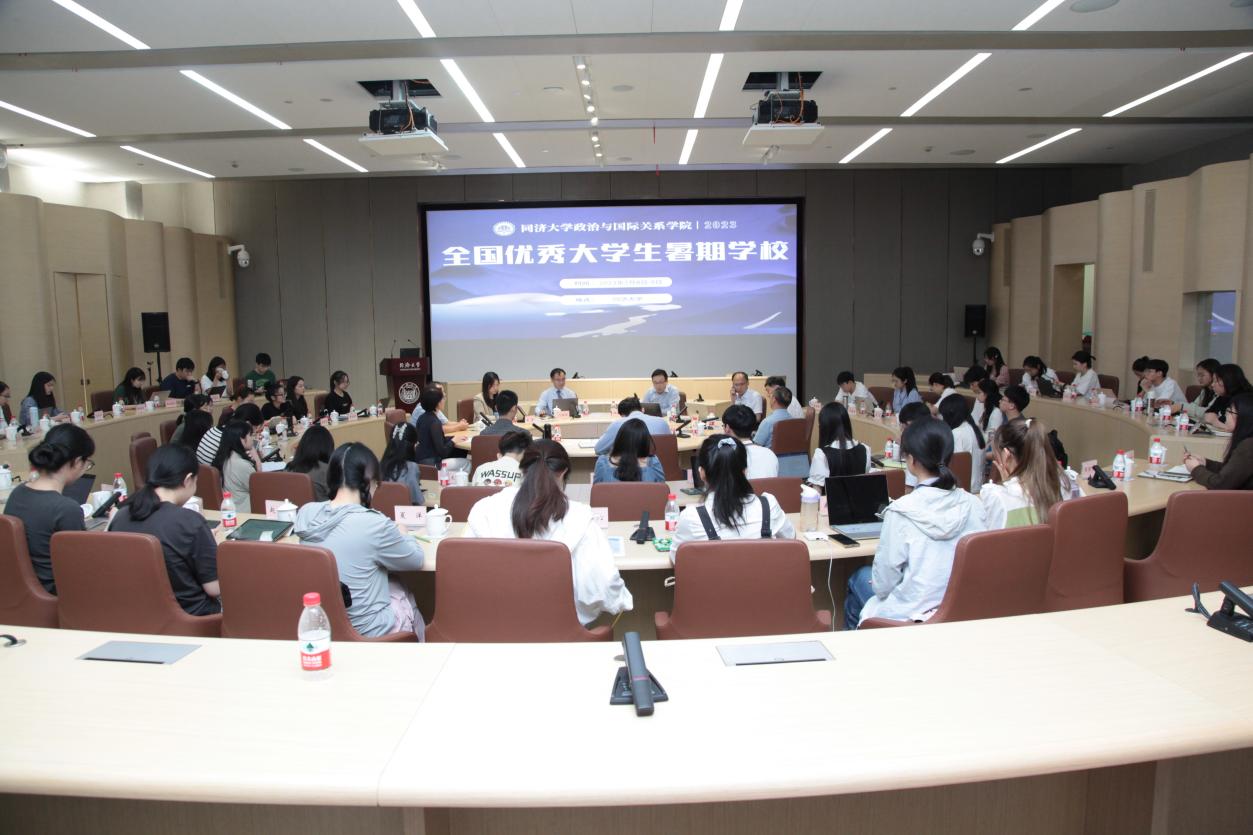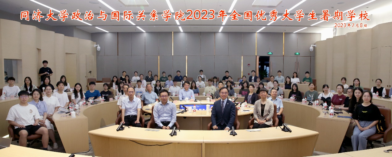 2023年7月8日上午8:00,政治与国际关系学院2023年全国优秀大学生暑期学校正式开幕,来自国内30余所重点高校近60位优秀学子在同济校园相聚。教育部长江学者特聘教授、政治与国际关系学院院长门洪华教授发表开幕致辞,学院党委书记徐红教授,副院长钟振明教授,外国语学院党委书记、政治与国际关系学院副院长郑春荣教授,学院学术委员会主任仇华飞教授、学院学术委员会副主任邵春霞教授,院长助理、外交学系主任吕蕊副教授和导师代表出席了开幕式。开幕式由学院副院长钟振明教授主持。