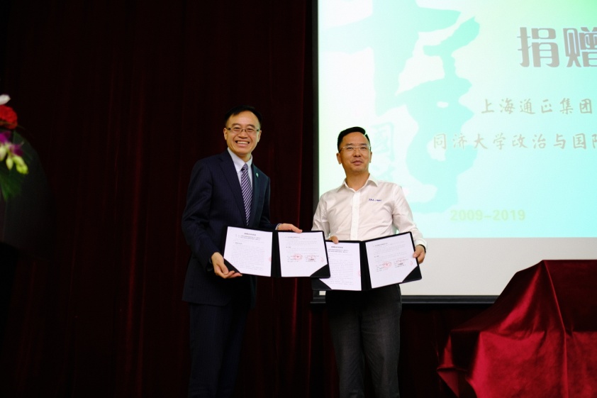庆典的第五项议程,隆重举行“同济大学通正教育发展基金”捐赠仪式,上海通正集团向我院捐款设立讲习教授教席、奖学金和助学金。上海通正集团董事长欧阳元文与门洪华院长交换了合作协议。