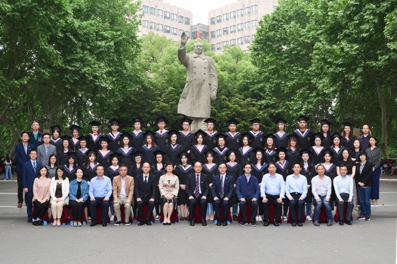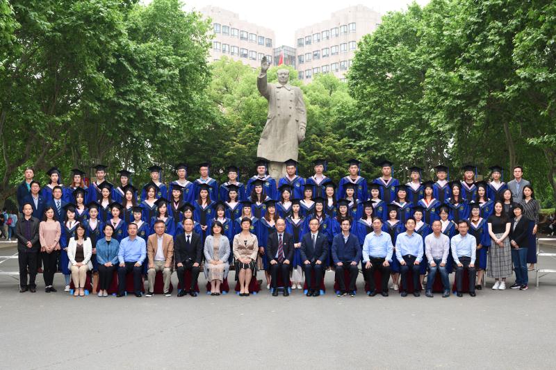 在建院十周年庆典结束后,江波副校长与学院领导、老师们与2019届政治与国际关系学院毕业生合影留念。