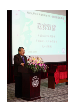 庆典的第三项议程分别由上海市国际关系学会会长、上海国际问题研究院学术委员会主任杨洁勉教授,全国政协常委、中国国际关系学会副会长、北京大学国际关系学院贾庆国教授,中国政治学会副会长、原山东社科联主席包心鉴教授,教育部长江学者、北京大学政府管理学院常务副院长燕继荣教授,中国国际关系学会秘书长、外交学院副校长孙吉胜教授代表学界、兄弟院校做嘉宾致辞。