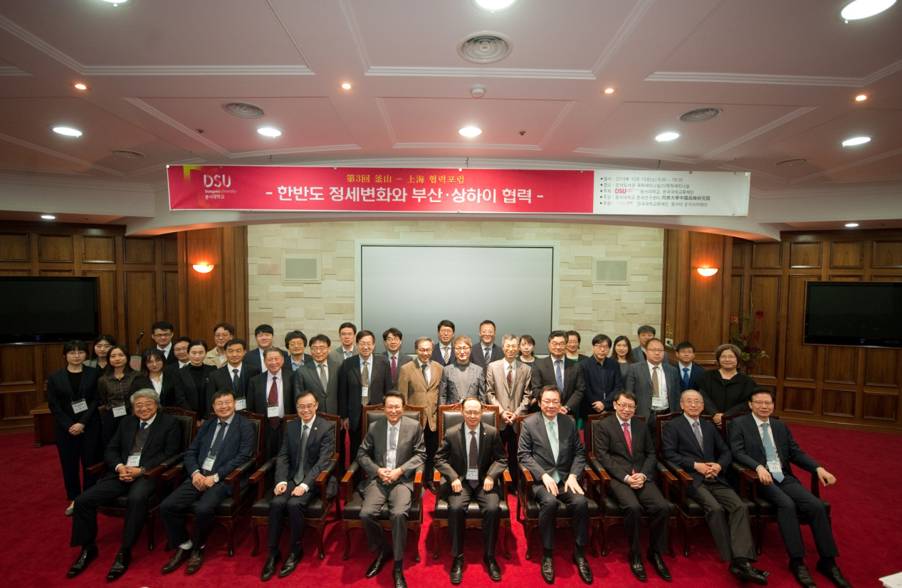 10月12日晚,东西大学为同济大学代表团举行欢迎会,东西大学校长张济国、同济大学党委副书记冯身洪等先后致辞,祝贺首届“上海-釜山合作论坛”的顺利举办。东西大学中国研究中心所长、前韩国驻华大使辛正承介绍说,2016年6月,同济大学中国战略研究院与韩国东西大学中国研究中心在上海同济大学签署合作备忘录,决定联合创办“上海-釜山合作论坛”,双方同意论坛将每年举办一次,轮流在釜山和上海举行,届时邀请中韩两国学界、前政府高官、企业界代表等出席,建立东西大学与同济大学的制度化联系渠道,并以此为平台促进姊妹城市韩国釜山市和上海市的深入合作,将之打造为连接两个城市乃至中韩两国交流的高端论坛。这一论坛计划得到同济大学、东西大学、上海市对外友好协会、韩国国际交流财团(The Korea Foundation)和韩国驻上海总领事馆的积极响应和支持。2016年11月,第一届上海-釜山合作论坛在釜山成功举办,2017年12月,双方在上海同济大学成功举办第二届上海-釜山合作论坛,今天来自中韩两国和上海、釜山两地的学界代表会聚一堂,参加第三届上海-釜山合作论坛会议,共商上海-釜山以及中韩两国之间的合作,其意义非同一般。