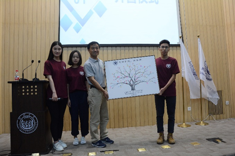 接下来,营员们将报到时完成的“生命指纹树”画作赠与学院,王存刚副院长代表学院接受画作。营员们以指纹作叶,寓意要与同济国政共同成长为参天大树。