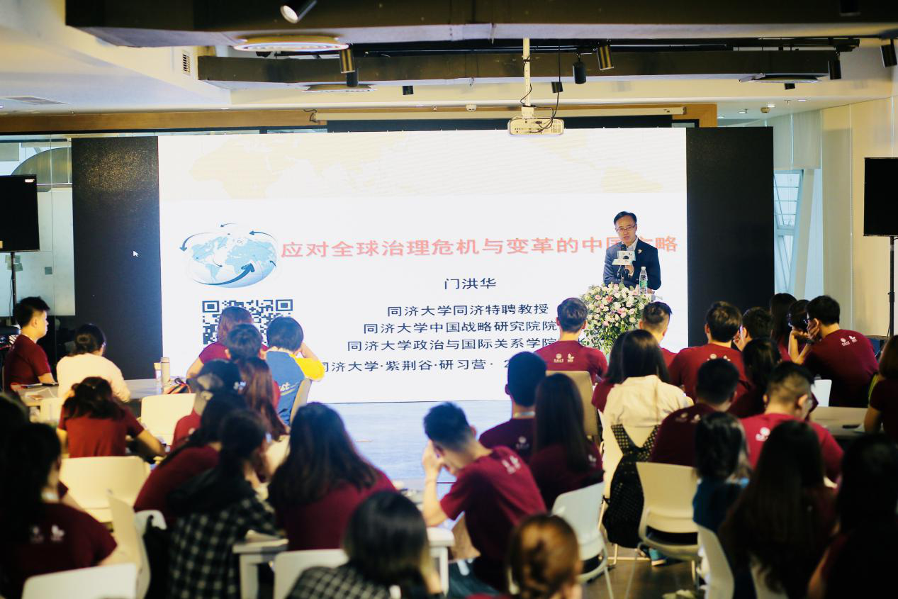 创新创业研习营开营当天,同济大学同济特聘教授、中国战略研究院院长、政治与国际关系学院院长门洪华教授被授予“紫荆谷创新创业研习营导师”聘书,并以《应对全球治理危机与变革的中国方略》为题,为大家深刻剖析当今国内外形势的变化,全面解读走向世界中的中国积极参与全球治理、承担国际责任的战略途径。门洪华教授从走进新时代的中国与世界、国际格局演变方向与特征、全球治理危机应对:历史与理论、当前全球治理危机及其战略应对、中国应对全球治理危机的战略举措、中国推动全球治理转型发展的取向等六个板块,以国际眼光、中国观点,全面、深刻阐释了在全球化日益升温的国际浪潮中、在中国不断崛起的进程中,我们应该如何发挥好自身优势,如何以更加积极的姿态参与到全球治理中,承担起CQ9(电子中国)官方网站的大国责任。