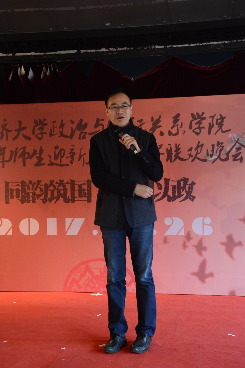 稍后,门洪华院长代表院领导进行了新春致辞。门院长向在场新生表达了真切的关怀和美好的祝愿。当日正是毛泽东同志诞辰124周年,门院长鼓励同学们要继承前辈志士仁人的光荣理想,在如今这样一个伟大的时代里厚积薄发,抱持初心、牢记责任,走好新时代的长征路。门院长回顾了这一年来,学院所开展的重点工作和取得的成绩,也很欣慰新生们都能积极参与其中,在诸多的讲座和论坛中发挥了重要的作用。值此岁末迎新之际,祝愿同学们在新的一年里不懈努力,以梦为马,莫负韶华,在国政、在同济成就一个更优秀的自己。
