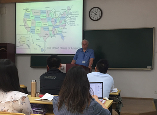 安德森教授从第二次世界大战在世界范围内所带来的影响出发,向同学们讲述了二战后世界格局的总体变化,并重点介绍在欧洲和亚洲两大区域的形势和战后主要国际组织——联合国的发展。接着他向同学们阐述了冷战格局的形成的原因。其中着重介绍了著名的乔治•凯南电报并强调了它对美国遏制政策的重大影响。对于冷战的过程,安德森教授强调了Trip Wire,即“警戒线”的概念。他认为美苏双方其实都在这一警戒线的附近徘徊,而一旦跨越了这种警戒线,其后果将会是难以预估的。