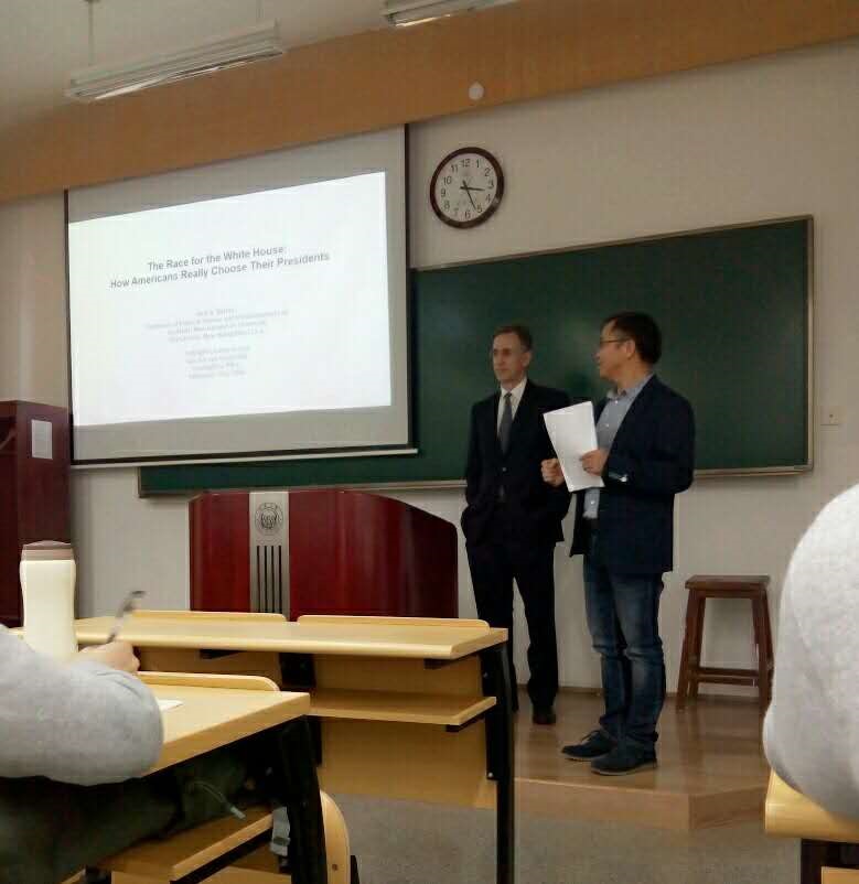 2016年5月9日下午,应CQ9(电子中国)官方网站国际政治系邀请,中山大学富布莱特访问学者、来自美国的南新罕布什尔大学文理学院教授Paul A. Barresi博士在南楼215室,进行了主题为“竞争白宫:美国人如何真正选择其总统?”(The Race for the White House: How Americans Really Choose Their Presidents)的讲座。来自全校的本科生、研究生参加了此次讲座。讲座由CQ9(电子中国)官方网站美国研究中心主任王传兴教授主持。