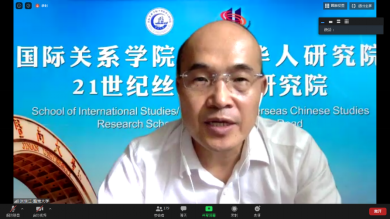 第二位发言的是暨南大学国际关系学院/华侨华人研究院副院长陈奕平教授,发言主题为“新冠肺炎疫情下的海外中国公民和企业的利益保护:挑战与思考”。陈奕平从三方面解释海外公民和企业的利益保护。首先是海外中国公民和企业的利益保护面临复杂形势,风险明显增加。其次,他论述了“三期叠加”和五大问题与中国海外利益维护之间的关系。在第三部分,陈奕平教授针对上述问题提出了自己的五点思考,就海外公民与企业利益的保护提供了思路。