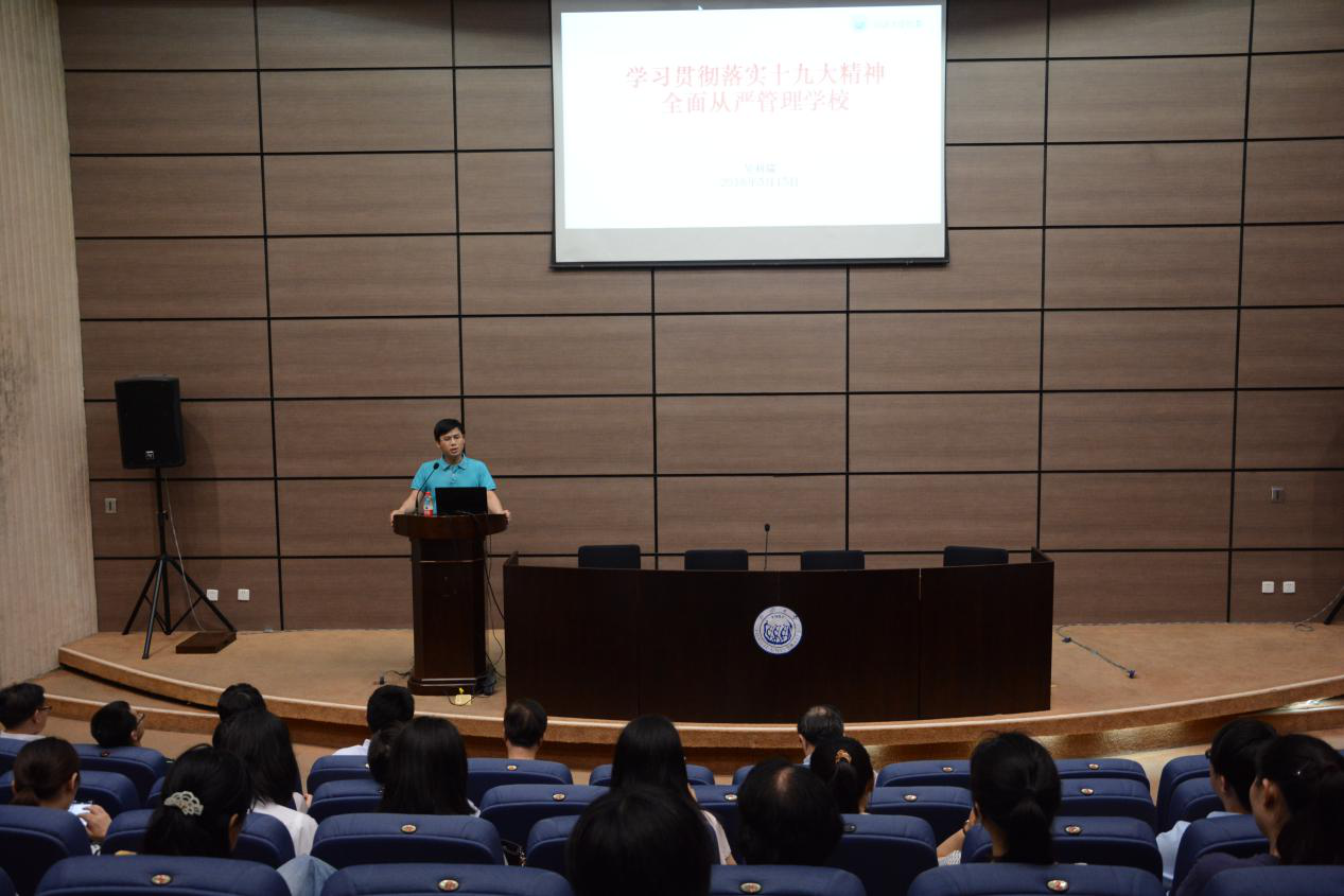 报告会上,吴利瑞副书记向各位老师阐述了《中国共产党章程(修正案)》的重要内容,对“国家治理体系和治理能力现代化在学校如何体现?要不要推进学校治理体系和能力现代化?如何实现学校治理体系和能力现代化?”以及“要不要全面从严治校?如何治?”这些问题提出深入的思考,他认为十九大精神为学校的发展与治理提供了新思路,值得每一个同济人深思并付诸实践。