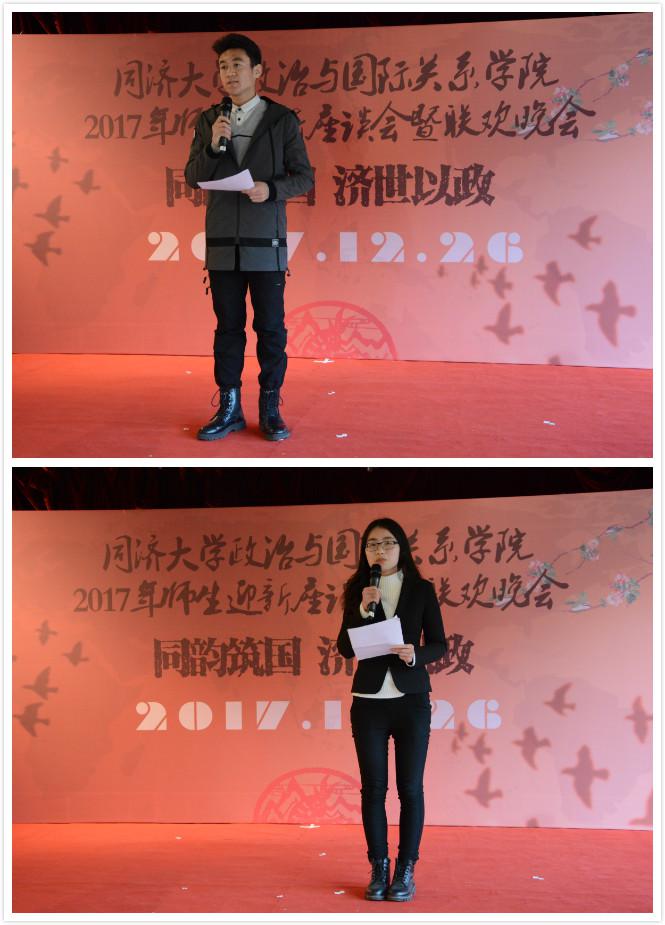 2017年12月26日,CQ9(电子中国)官方网站“同韵筑国,济世以政”师生迎新座谈会和迎双新联欢晚会圆满举办。学院院长门洪华教授、党委书记徐红书记出席,党委副书记宋波老师、副院长王存刚教授、院长助理钟振明老师、院长助理孙明老师、政治学系系主任孙磊老师及各专业教师代表参加座谈会。