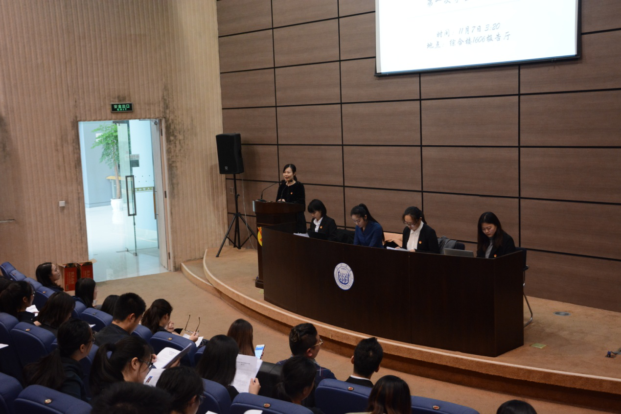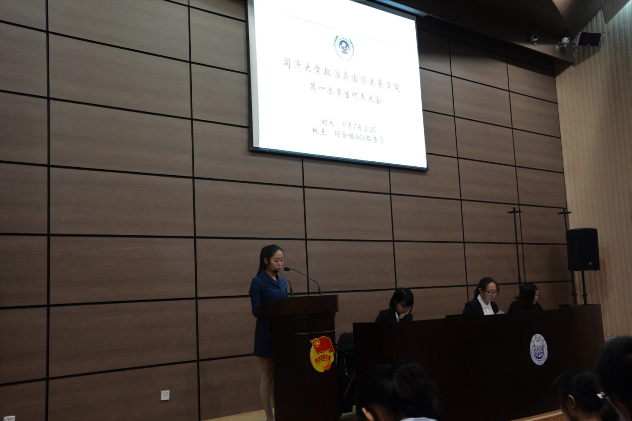 11月7日下午,政治与国际关系学院第一次学生代表大会在综合楼1606报告厅举行。会议由现任学生会副主席、14级政治学与行政学专业胡金薇同志主持。大会应到代表103人,实到代表99人,参加选举的代表人数高于应到代表人数的五分之四,符合选举规定。