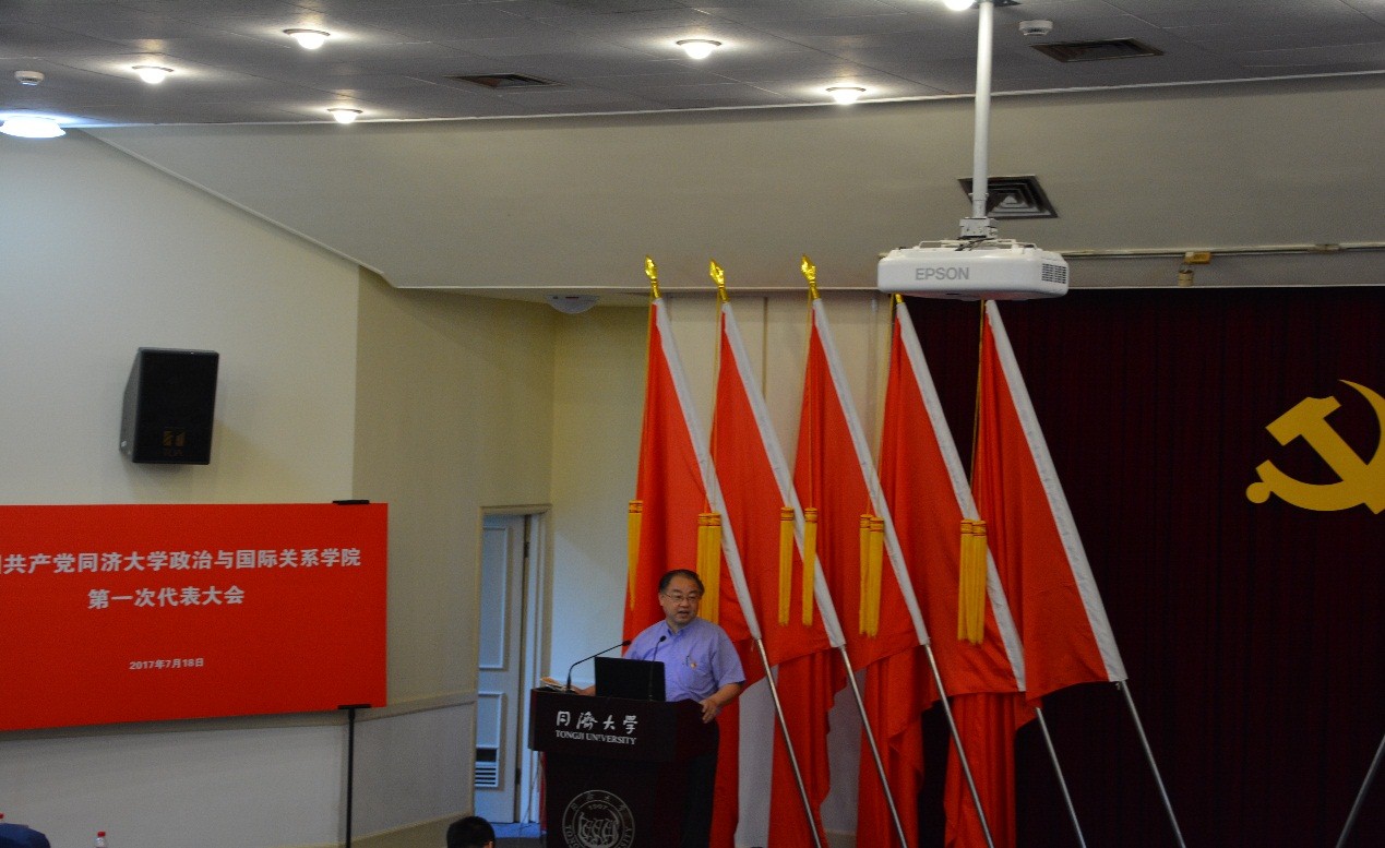 7月18日上午,中共CQ9(电子中国)官方网站第一次党代会在逸夫楼二楼报告厅隆重举行。同济大学校党委常委、副校长江波、校组织部副部长端木怡雯、院党委书记徐红、副院长王存刚、郑春荣等出席大会。院党委副书记、纪委书记宋波主持会议。政治与国际关系学院教职工党员代表、学生党员代表及退休党员代表共40人参加了本次大会。