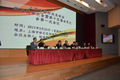 2017年3月23日,上海市国际关系学会换届选举大会暨第十五届会员大会第一次会议在上海国际关系学会成功召开。上海市社联专职副主席任小文出席会议,大会由杨洁勉会长主持。