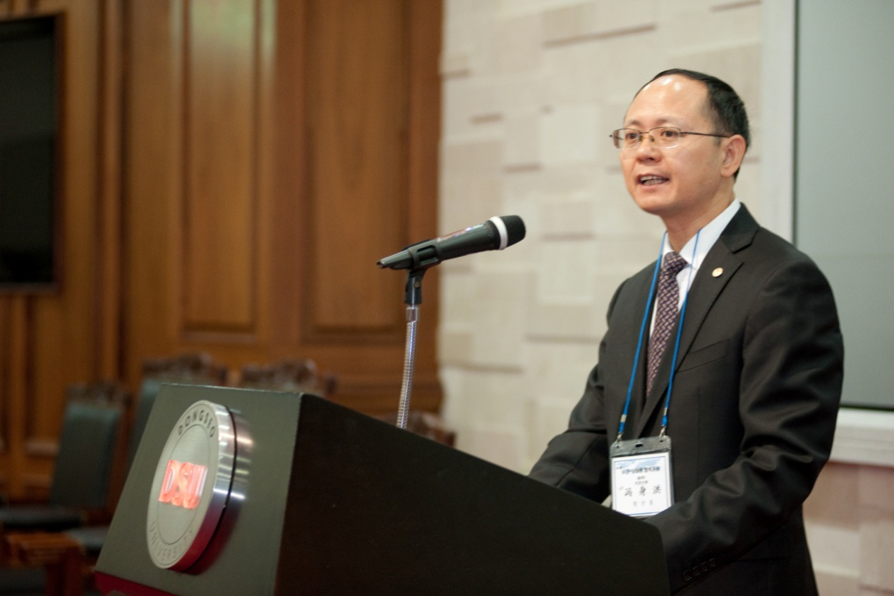 10月13日,论坛在东西大学民石图书馆6层国际会议厅正式举行。本届“上海-釜山合作论坛”讨论的主题是“韩半岛局势变化和釜山-上海合作”。东西大学中国研究中心所长辛正承大使首先致开幕词,向与会代表们介绍“上海-釜山合作论坛”举办的背景和出席此次第三届论坛会议的主要嘉宾。东西大学校长张济国教授代表东西大学致欢迎词,对来自中韩两国的参会人员表示热烈欢迎。