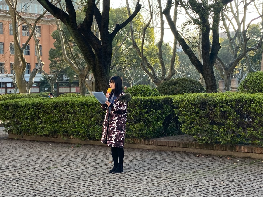 随后,政治与国际关系学院2017级本科生吕涵语同学发表了主题为《执梦而行,拂晓而歌》的国旗下讲话。吕涵语同学从自己的专业经历出发,提到青年一代在实现人生价值的过程当中,要将“小我”的发展融入到“大我”的理想实现进程中;在云南云龙县城的实地走访调研以及帮扶问题上,同济研究生支教团彰显了将理想立足祖国大地,将视线聚焦社会发展的美好品德;她还从自己大二时鲁家村和余村的走访经历出发,表达了对基层工作者的尊敬,国家正是因为有了这些爱国爱民的“人民公仆”,社会才能正常运转,百姓生活才能逐步改善。在最后,她呼吁青年人应怀着“只问是非,不记利害”的态度,“斯是陋室,惟吾德馨”的温度,“以天下为己任,以真理为依归”的高度,在远大抱负中脚踏实地。