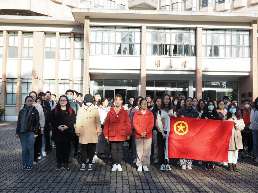 2021年3月22日早晨,马克思主义学院、政治与国际关系学院共同承办的“青春心向党,勇做追梦人”主题升旗仪式在四平校区升旗台举行。