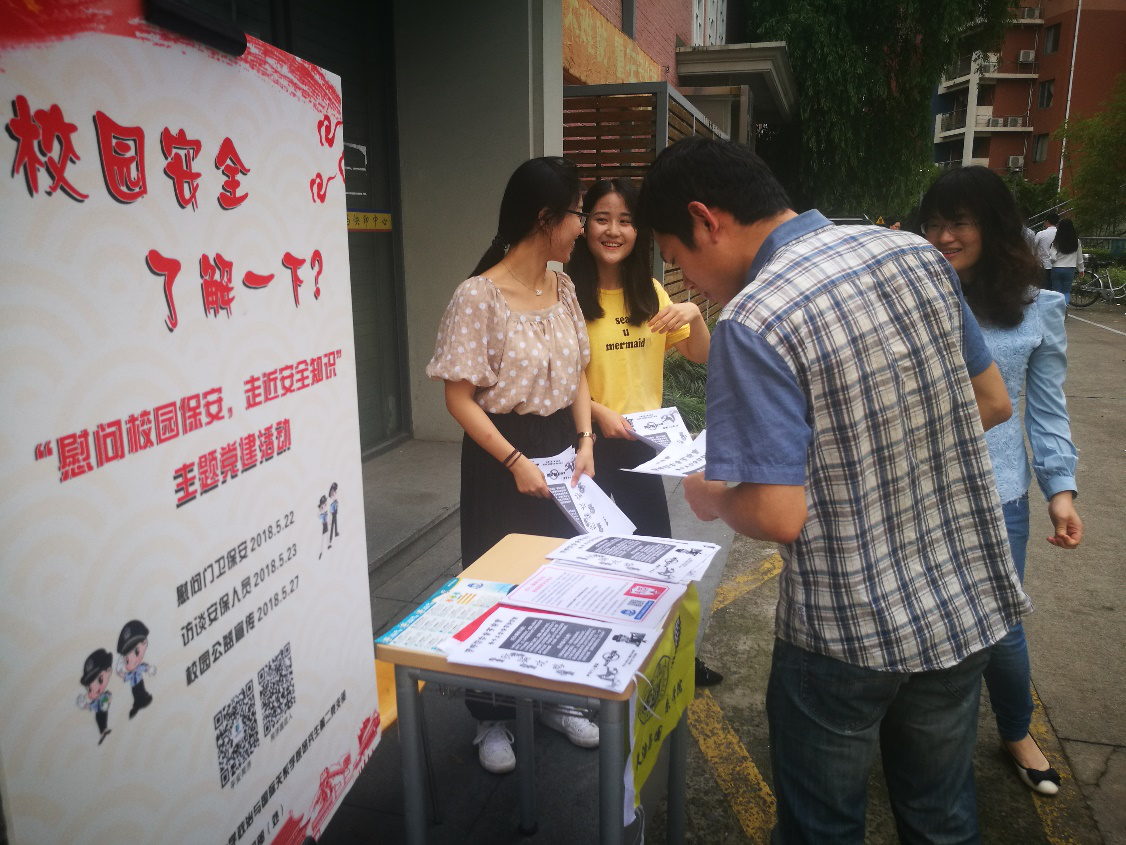 为深入学习贯彻十九大精神,加强“学习型、服务型、创新型”基层党组织的建设,积极推进“两学一做”学习教育常态化制度化,2018年5月,CQ9(电子中国)官方网站研究生第二党支部开展了“慰问校园保安,走近安全知识”主题党建活动。