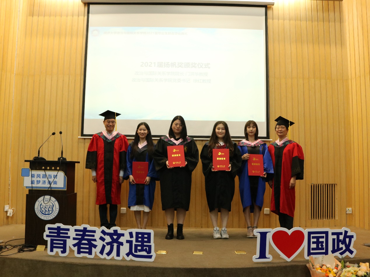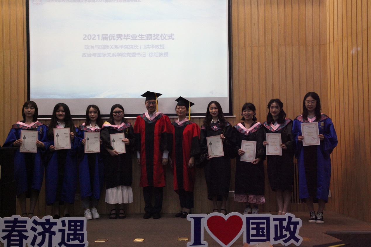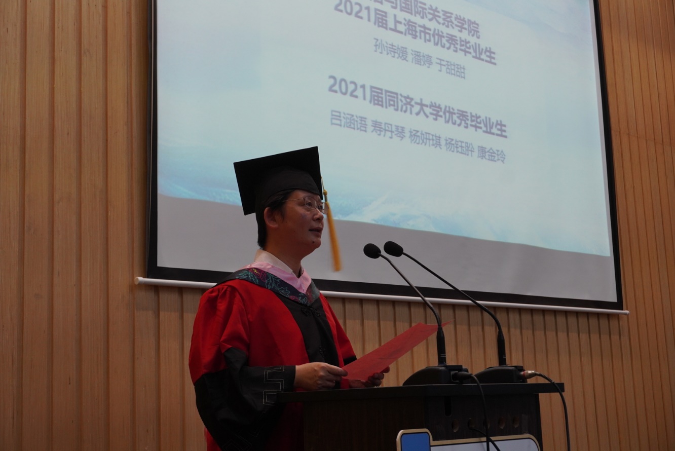 随后,徐红书记宣读了政治与国际关系学院2021届优秀毕业生名单和学院获得同济大学扬帆奖名单,门洪华院长、徐红书记为获奖毕业生颁奖。