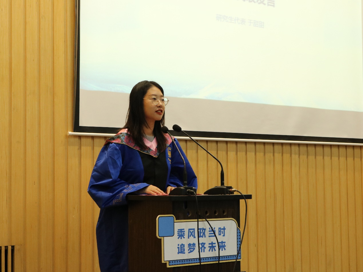 本科生毕业生代表溥雨欣同学表达了对母校和学院的感谢和祝福。大学四年时光,带给她的