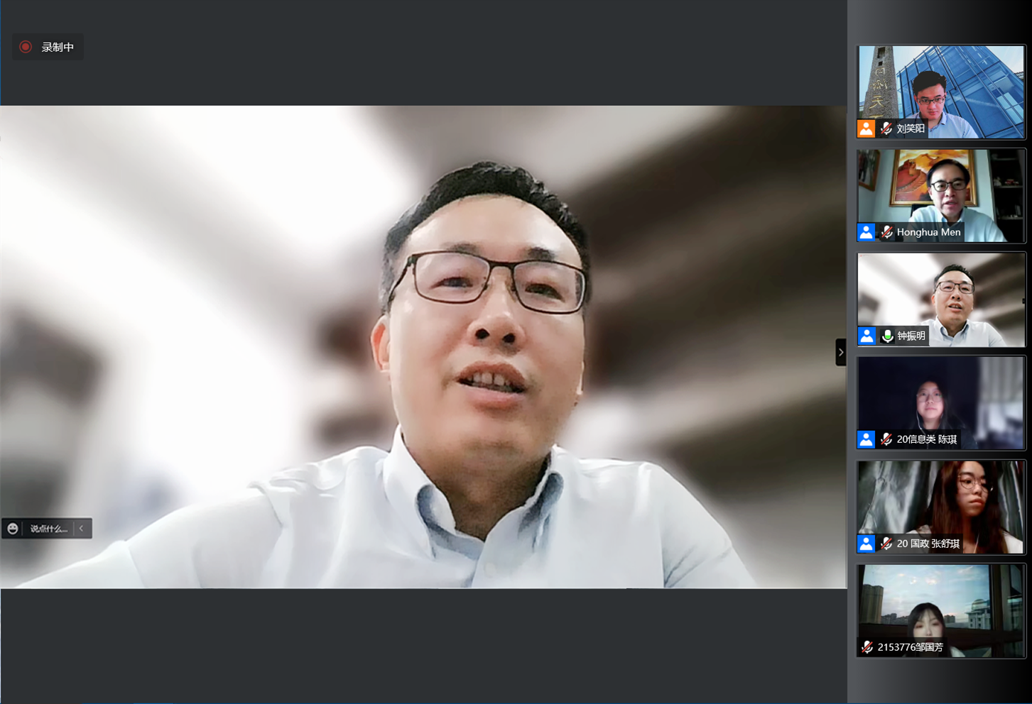 在此次座谈会上,门洪华院长首先表达了同济大学青海招生组对各位青海籍同学的殷切关心,并且转达了青海省教育战线领导对同学们的挂念之情。接着,他结合自身在青海省委党校挂职的过往经历、到青海各地调研考察的心得体会以及对“大美青海”与青海人民淳朴善良的深刻印象,对同济大学青海招生组近年所取得的成绩表示由衷的肯定,也对各位同学和老师在其中的付出表达了衷心的感谢。与此同时,门洪华教授很高兴地看到青海籍的同学们在同济大学取得了明显的进步,既保持着青海的淳朴,也融汇了上海的开放;不仅顺利适应了大学的生活,也能尽情诠释着自身的优秀。展望未来,他希望同学们可以在同济大学追求一种综合的提升,可以坚韧从容地接受疫情的考验,可以在线下进行更好更全面地交流互动。他欢迎各位青海籍的同学们借助此次座谈会提出心中的期待和困惑,学院和招生组愿意通过制度化的工作机制和常态化的助力形式,为同学们在同济大学的学习生活保驾护航。