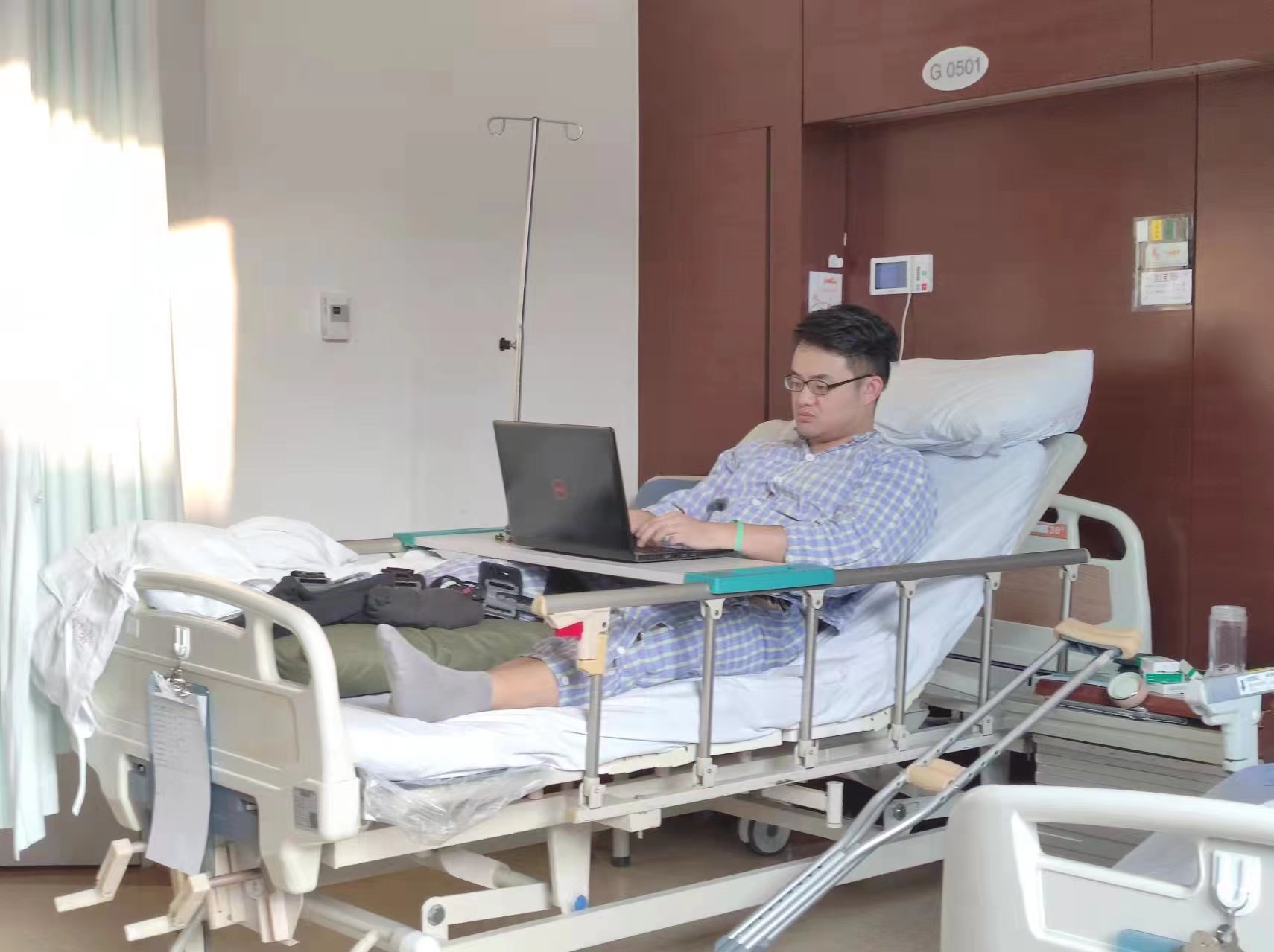 In late February before the outbreak in Shanghai, Associate Professor Liu had a reconstructive operation due to the rupture of the knee ligament, which is supposed to take him at least one quarter to fully recover. In the first month of recovery, although he was unable to participate in relevant activities at the school, he still used the Internet to teach the students and answer questions from them and provide assistance to the school, without affecting the normal teaching and administrative work. In mid-March, although he had to wear protective equipment and walk with a crutch, he was still ready to return to the school and work immediately at any time.
